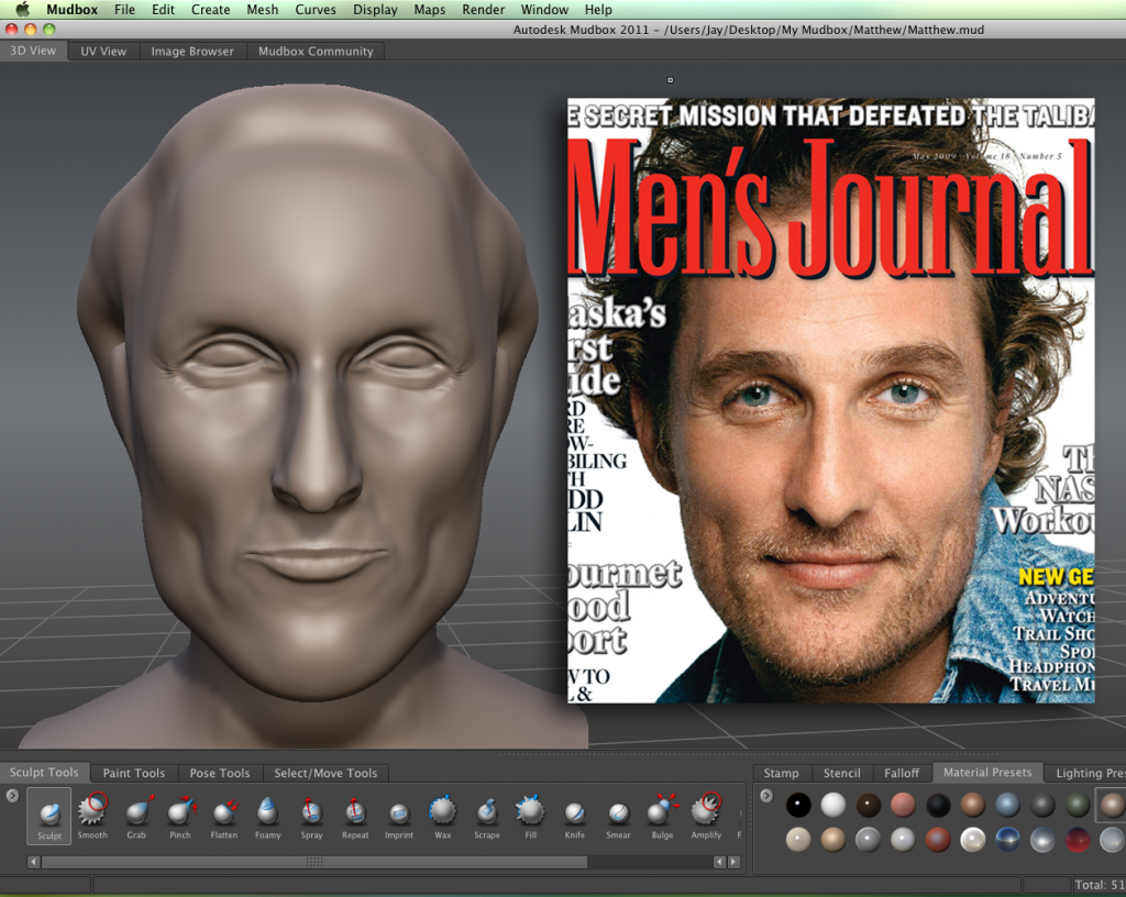 I picked one of the great actor in Hollywood Matthew Mcconaughey, started making the base head shape using Modo and tracing the shape using backdrop technique, polycount was set to a minimum as possible and here i did just under 400 polys
